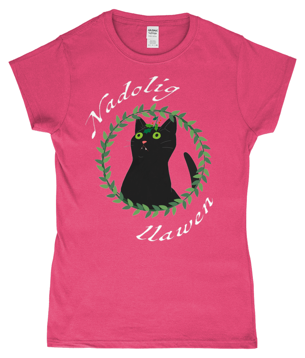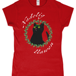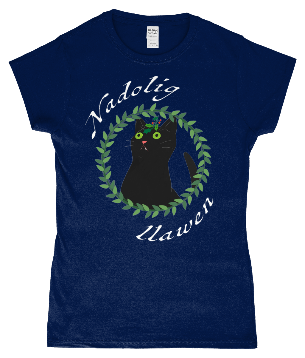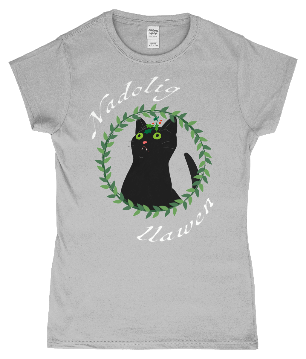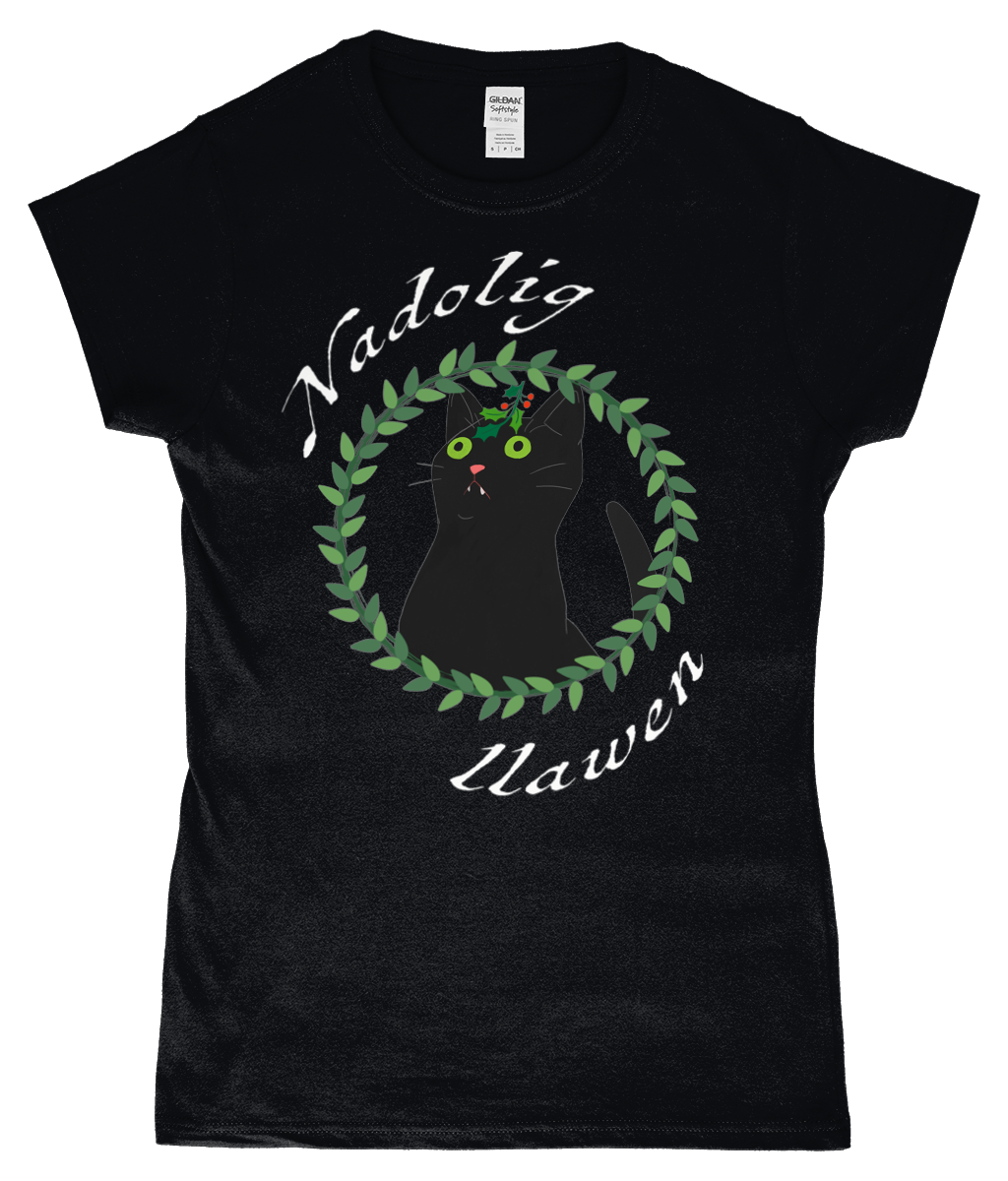 Nadolig Llawen - Black cat - T-Shirt "fitted"