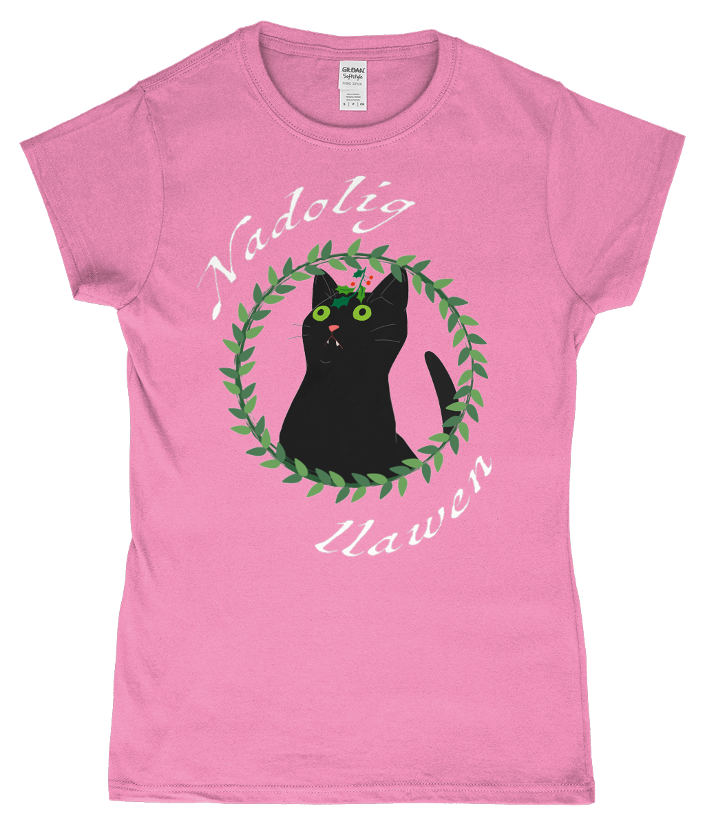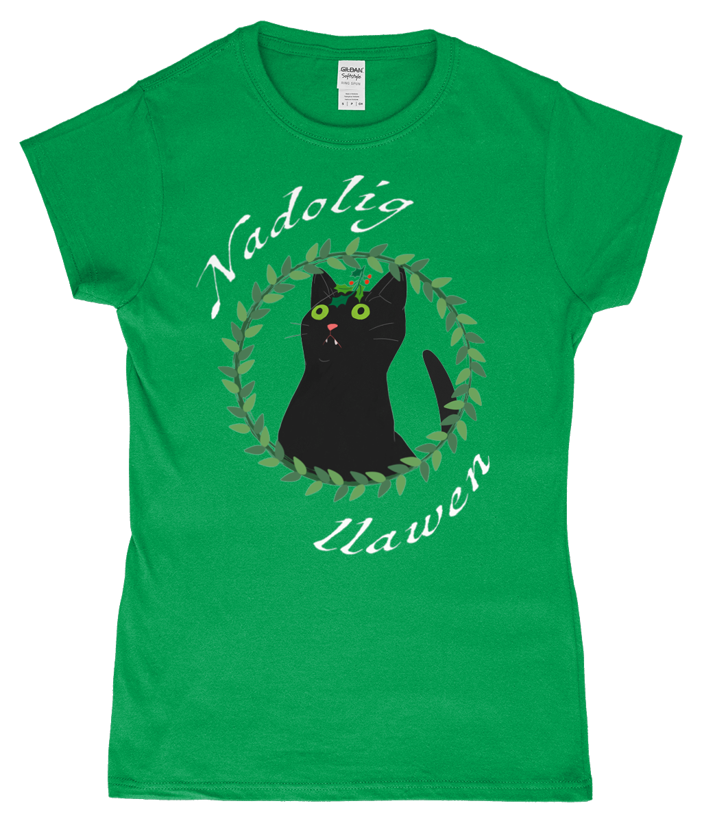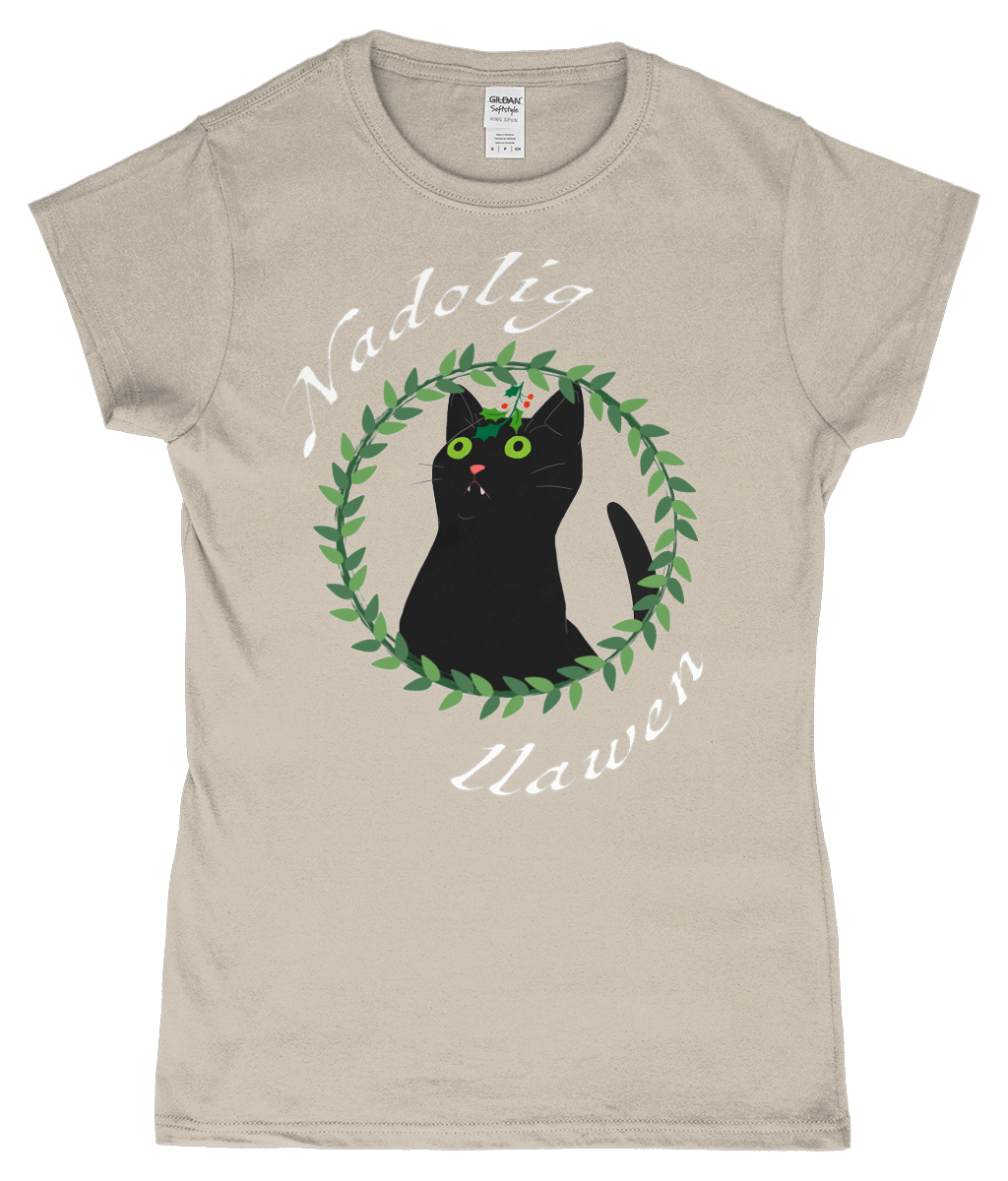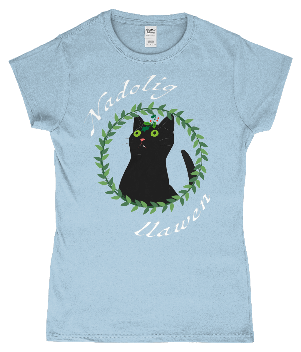 Nadolig Llawen - Black cat - T-Shirt "fitted"